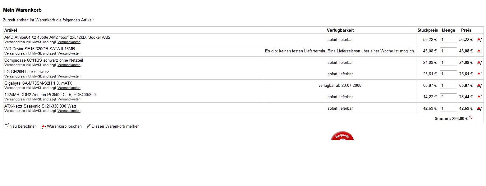 Bestellen werden wir bei hardwareversand.de