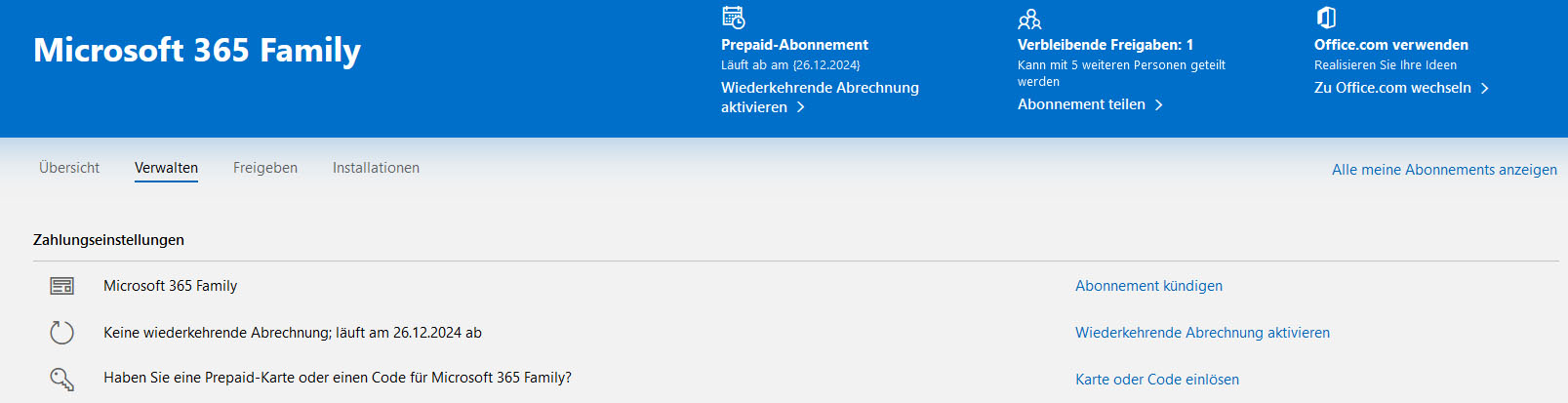 Das Abo ist fest mit einem Microsoft-Konto verknüpft.