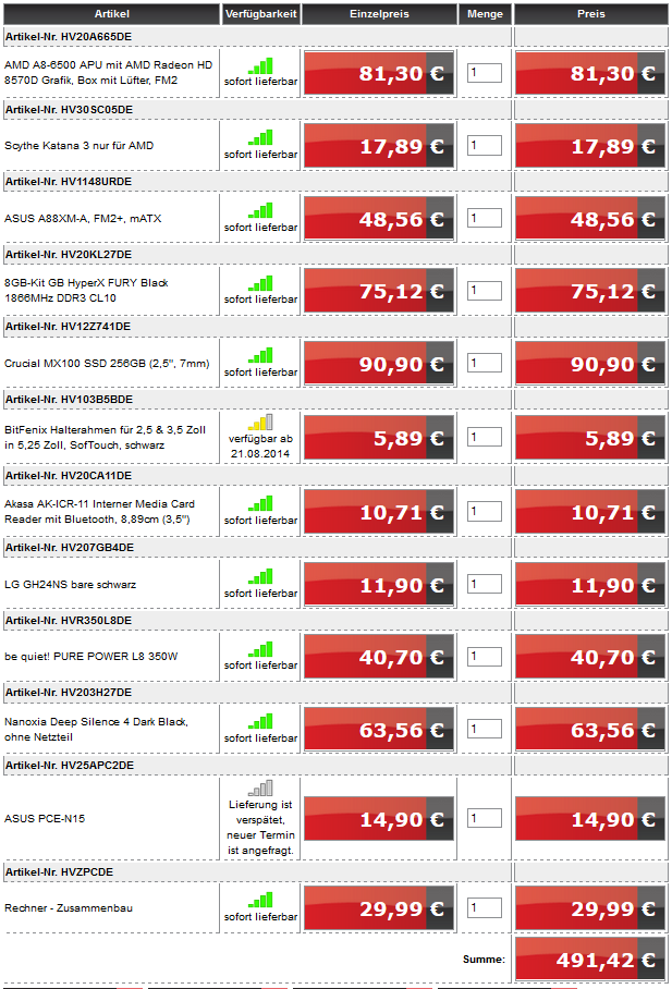 Alle Artikel sind, spätestens ab morgen, verfügbar. Kann ich das Ding jetzt guten Gewissens so bestellen?
