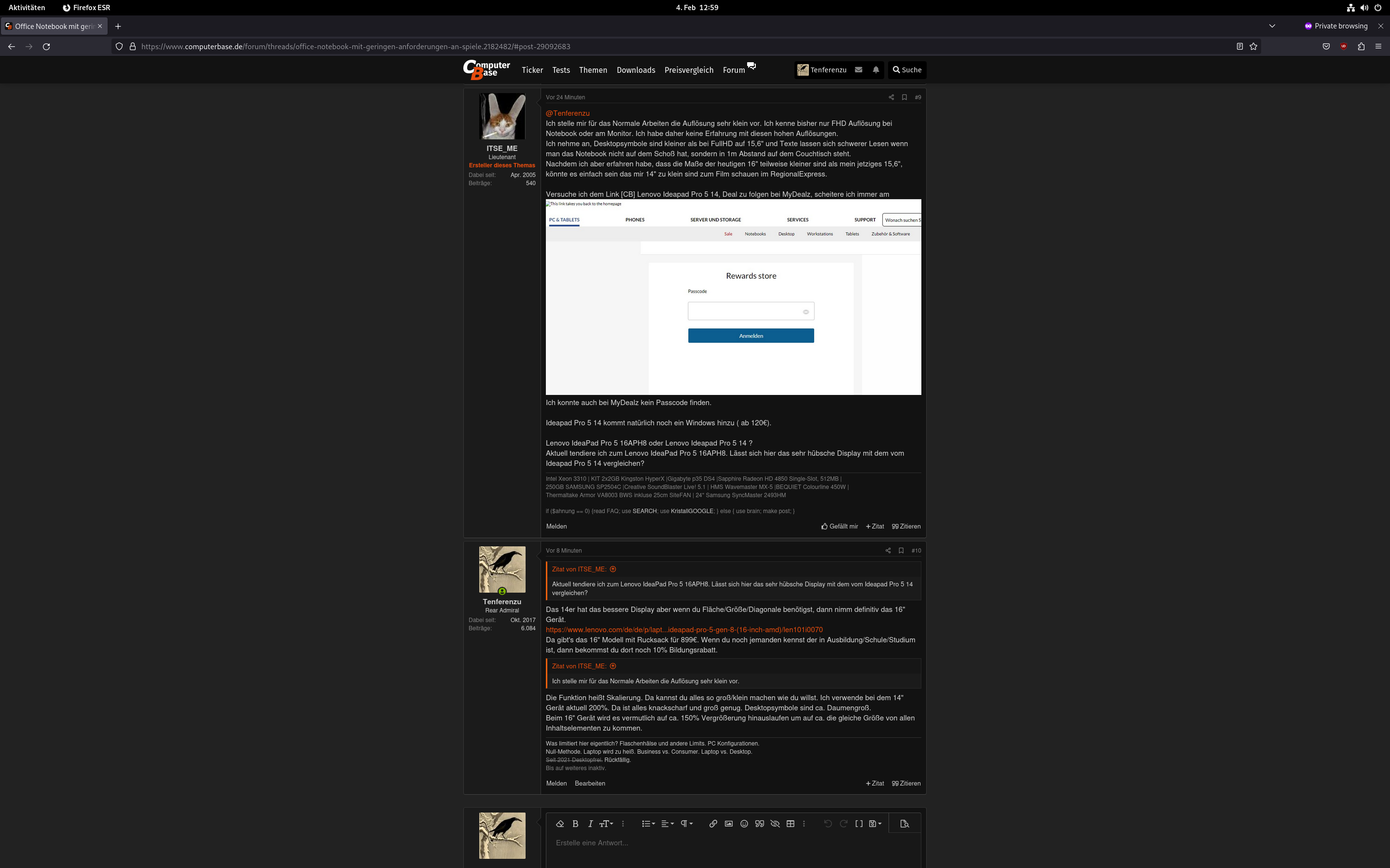 Nice to have: Laden per USB-C, Akku nicht fest verlötet, Tastaturbeleuchtung, RAM erweiterbar auf 16 GB, Austausch der SSD über eine Wartungsklappe, Ich möchte ungern mehr als die Unterseite des Notebook aufschrauben müssen um den RAM zu erweitern oder SSD auszutauschen, Lüfter reinigen