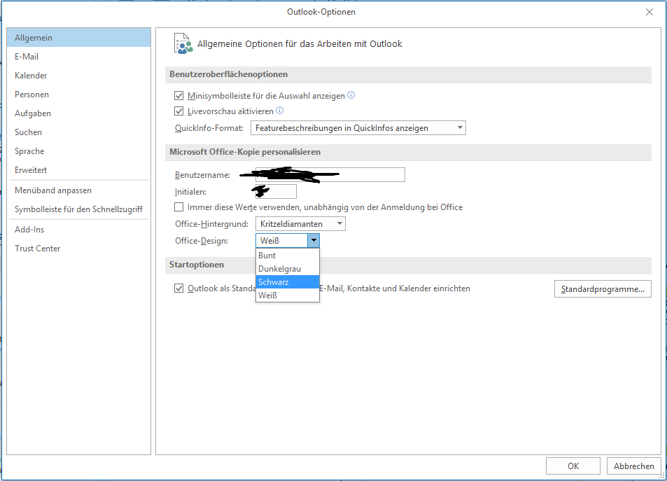 Also ich kann das schwarze Design einfach bei den Optionen Auswählen:
