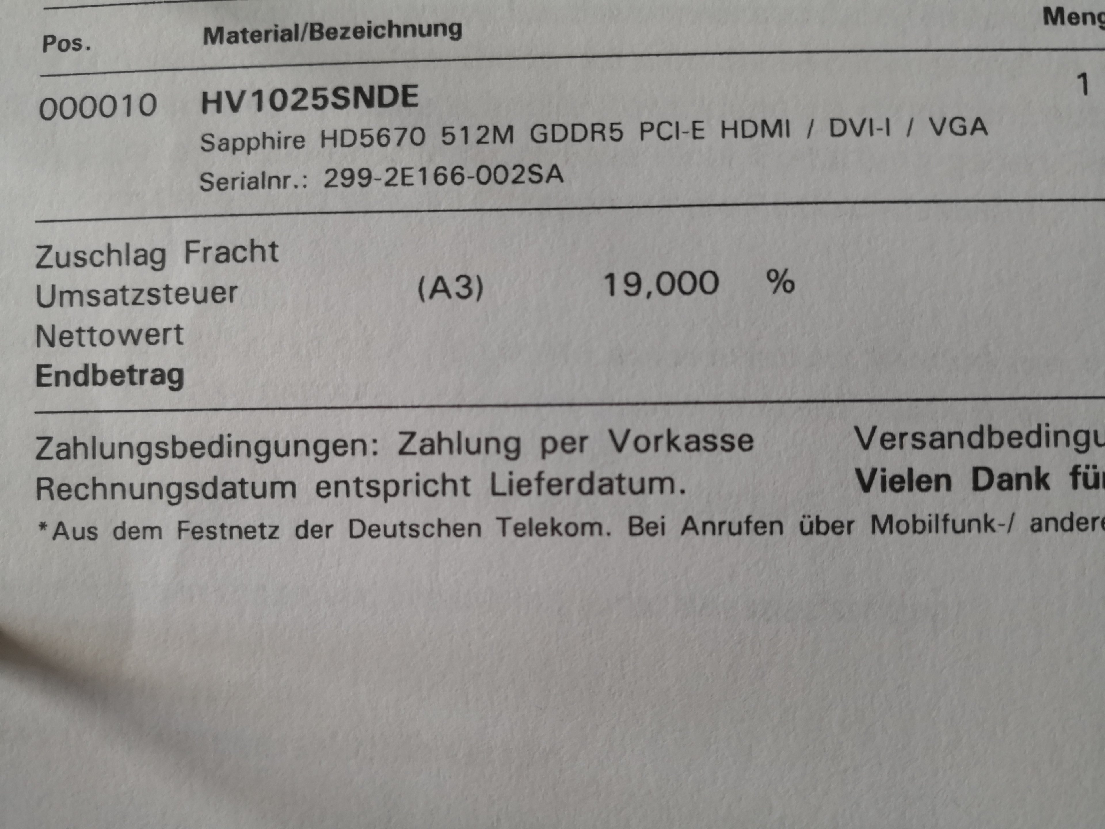 Anbei noch die Rechnung vom alten PC aus 2007 bzw. 2011 (Erneuerung Graka)