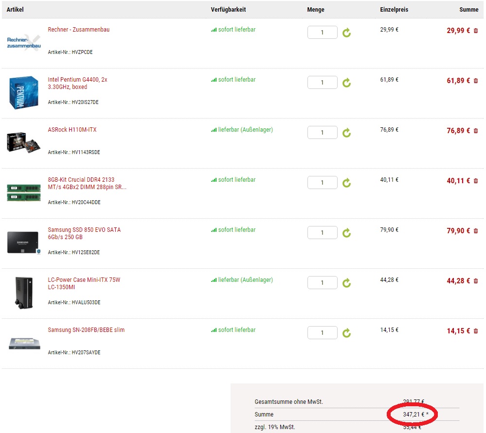Ich möchte mir bei Hardwareversand.de einen Office PC zusammenbauen lassen.