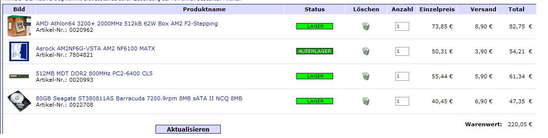 Bei Mindfactory ist kein Sempron verfügbar, deswegen Athlon64, außerdem weiß ich nicht, was ich von nem Sempron halten soll. Graka Onboard sollte ausreichen. Der 800er RAM kostet 3€ mehr, also warum nicht