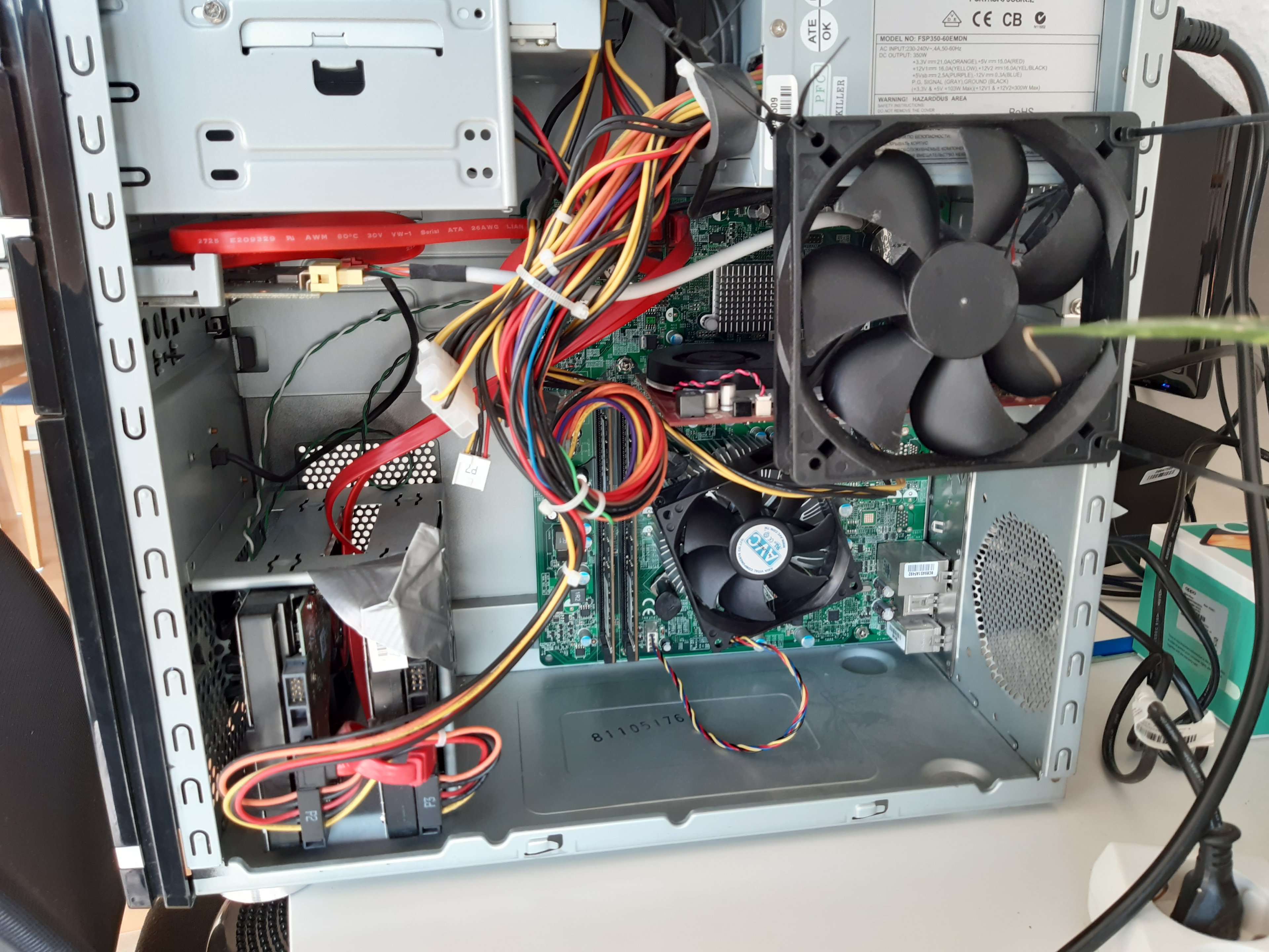 Das Gehäuse lasse ich in der Regel auf, da meine Grafikkarte mal den Geist aufgegeben hatte. Nach dem Backen im Backofen, mit neuer Leitpaste und zusätzlichen Lüfter läufts aber wieder.