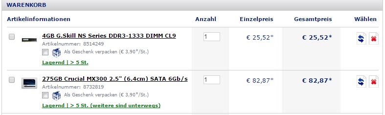 #3 16 GB Ram können gerne auch auf 8 GB DDR4 gekürzt werden... Sollte nur dann eventuell 2 x 4GB sein, zwecks DualChannel.