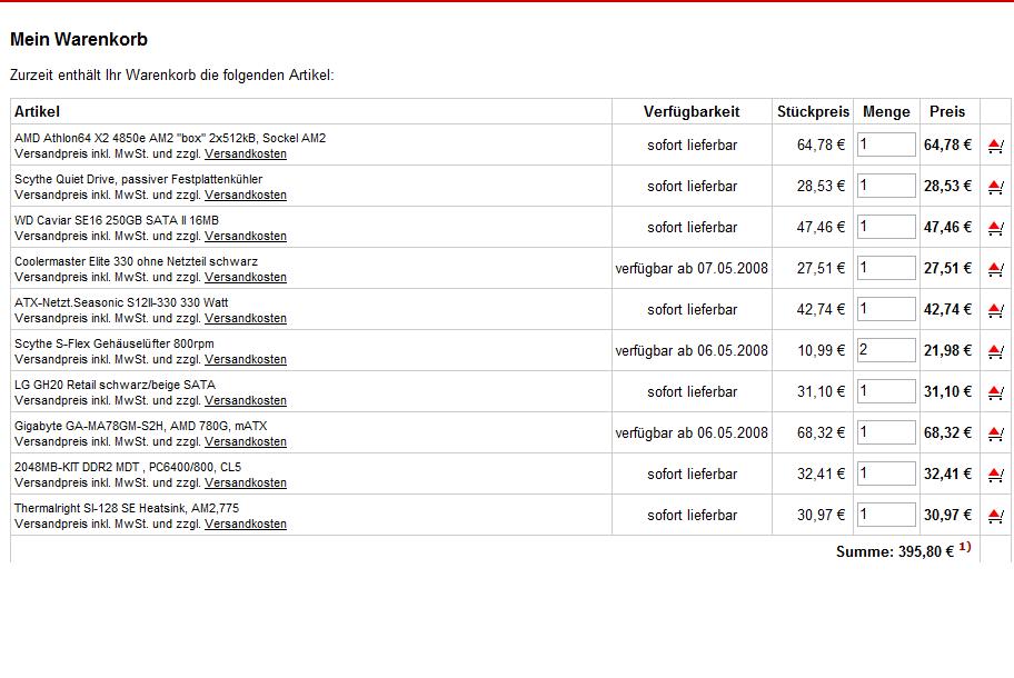 naja und das wichtigetse in meinen AUgen CPU Kühler .... ich hab noch nicht Recht heruasfinden können ob er nur passiv sein sollte oder obs mehr Sinn amchen würde ihn nicht passiv zu betreiben und dafür keien Gehäuse Lüfter zu verbauen. oder wärs anders rum leiser???