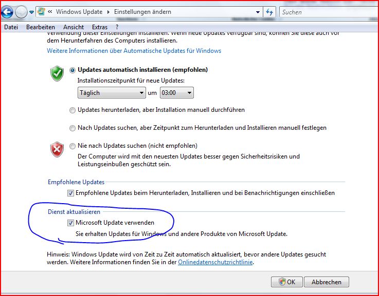 Gib mal das im Browser ein und drück dort auf OK , dann sollte Microsoftupdate wieder erscheinen.