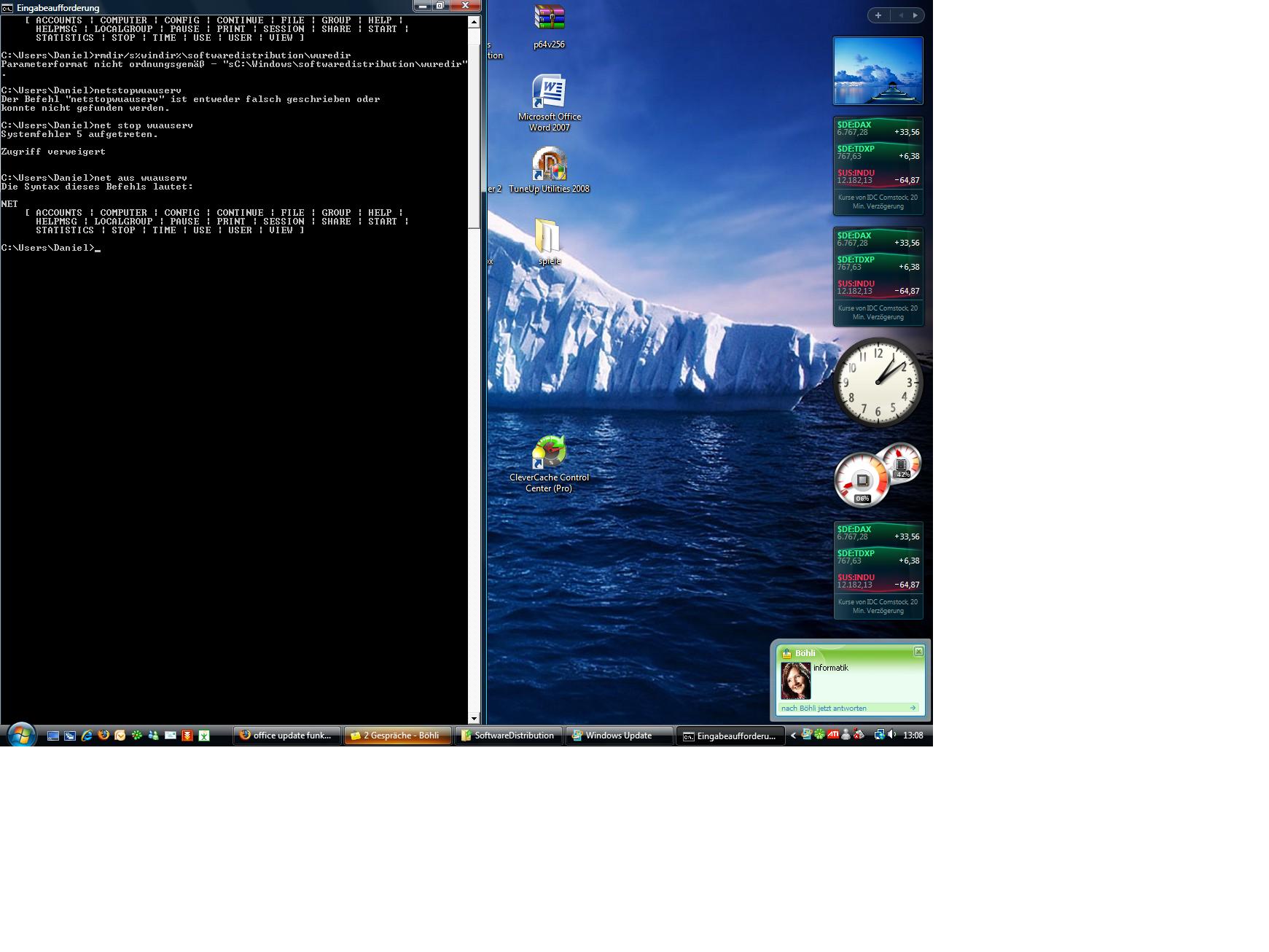 naja gut, versuchen wirs halt über die dienste: den Dienst "Windows Update" beenden, das angegebene Verzeichnis löschen. Wenn geklappt hat, Dienst wieder starten und testen. Wenn du ein Zugriffsfehler bekommen hast Dienst auf deaktiviert stellen, neu starten, löschen, Dienst wieder aktivieren und starten. Dass das Verzeichnis neu angelegt wird, ist schon richtig so. Sollte das net klappen, kann ich dir für den Moment nicht weiterhelfen.