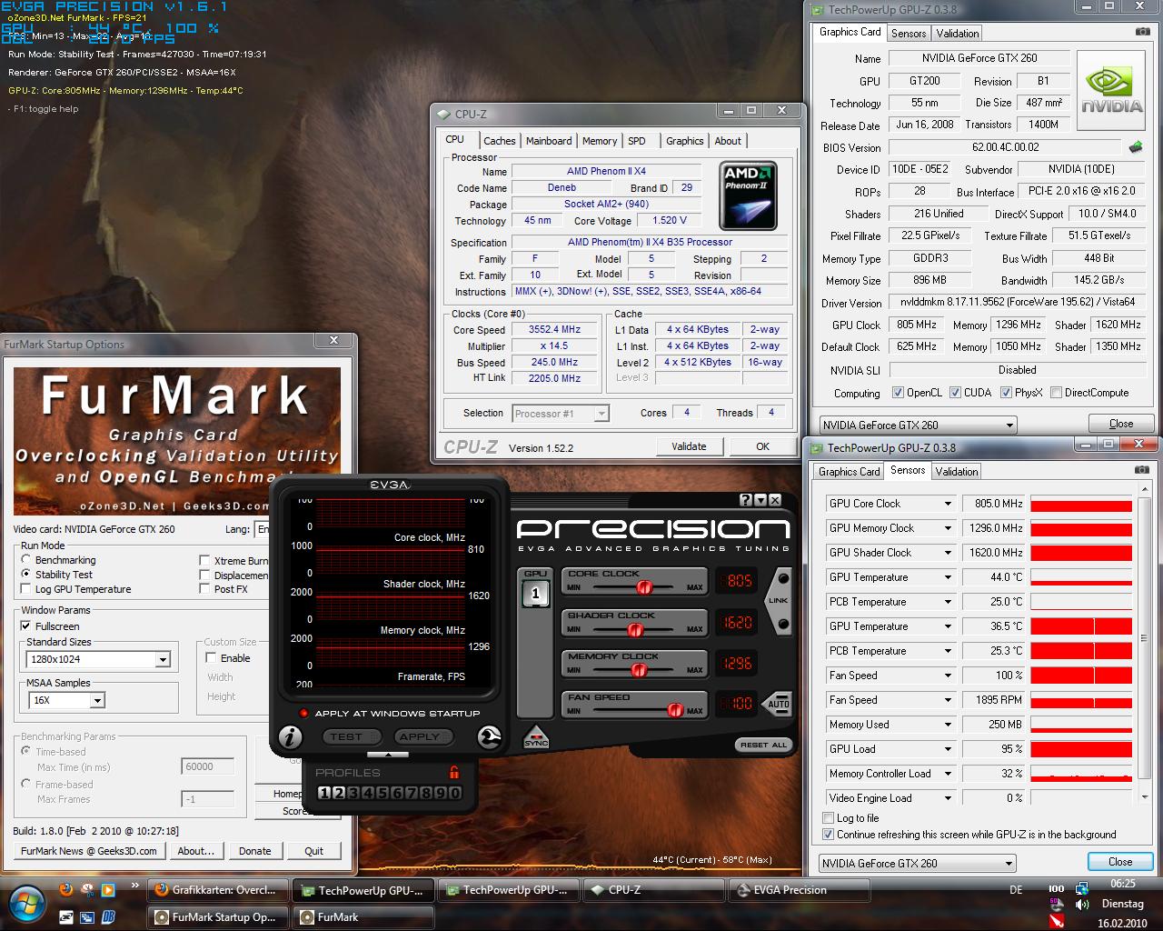 Mehr geht nicht, bei 1,13V krieg ich in Furmark nach 5 sek nen Freeze bei gleichen Taktraten. Mehr als 1,12V verträgt sie wohl nicht.