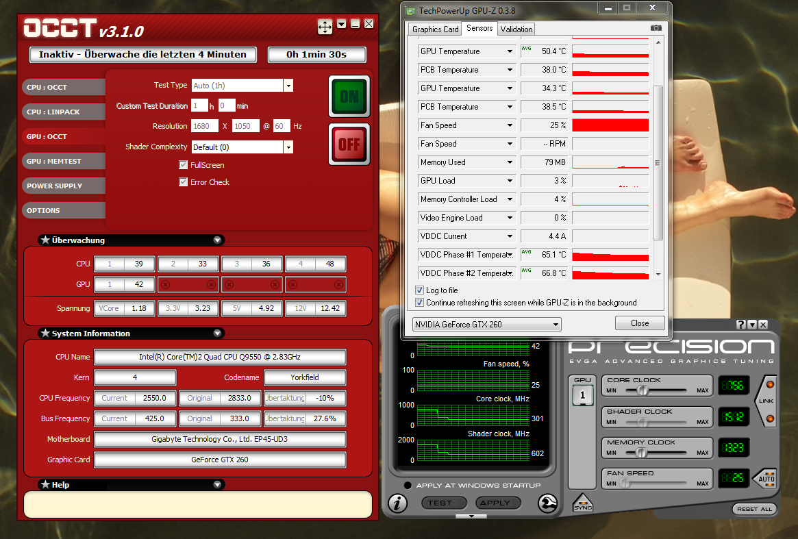 echt hammer werte bei der spannung vorallem der speicher respekt. aber du weist doch gar nicht ob occt errors angezeigt hat weil steht ja noch im screen noch überwache die letzten 4min !!!! danach zeigt er ja erst die error meldung !!!!
