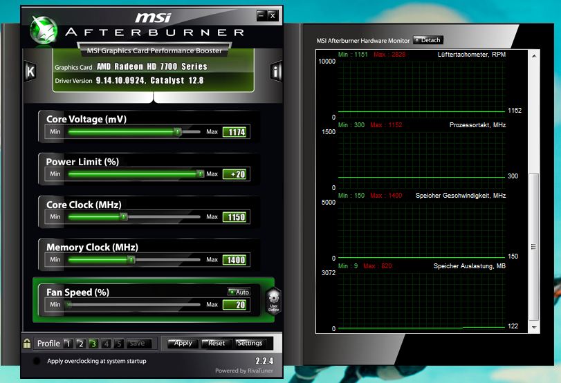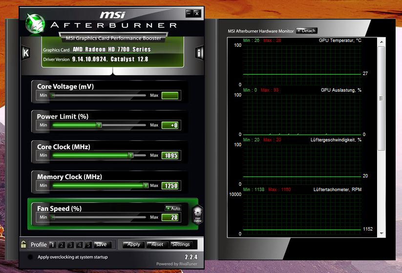 - Es kann jedes Overclock Tool verwendet werden, ich empfehle MSI Afterburner