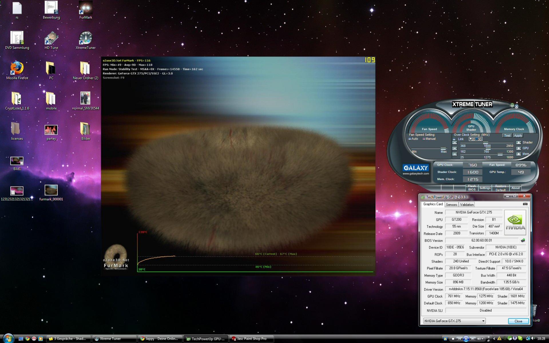 Chip ist wohl an der Grenze...wenn ich höher gehe schmiert furmark nach 120 sekunden ab...