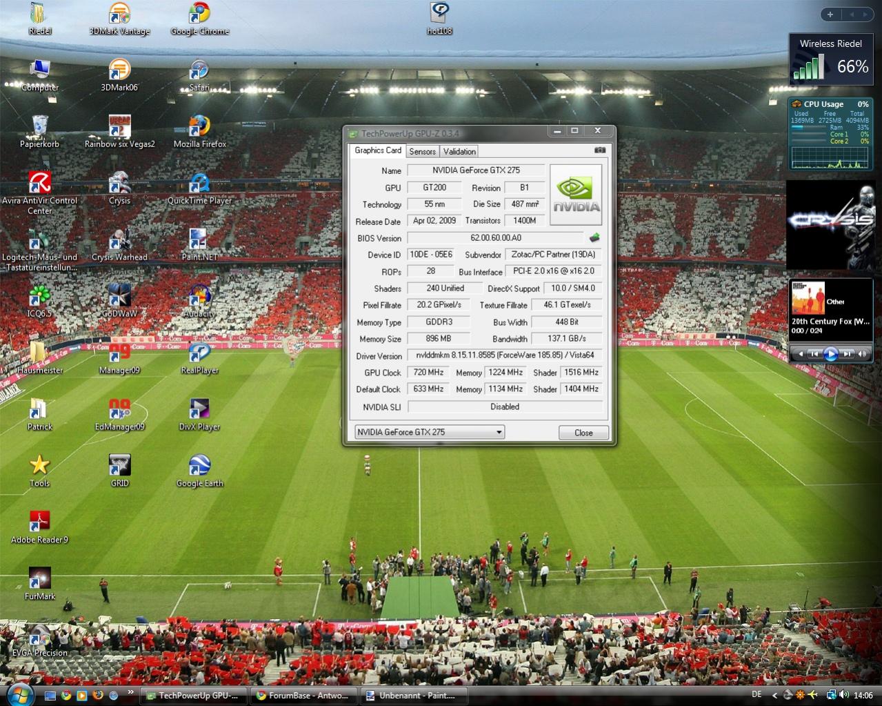 Ich habe auch die Zotac. Übertaktest du mit dem Rivatuner? Bei mir funktioniert der mit dem Treiber 185.85 nicht mehr..... Ich denke beim Shader ist bei dir bestimmt noch etwas mehr drin!