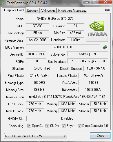 Also ich hab eine Gainward GTX 275 Golden Sample und kann den Shader nur auf max 1499 takten, danach muckt der Treiber(285.62). Gibt es da eine Möglichkeite das ganze etwas zu steigern?