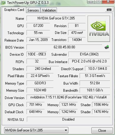 Wollte mir auch eine GTX285 holen (2GB Variante). Aber dank des schwachsinnigen und verbugten DualView von Nvidia würde die Karte dann immerzu im 3D-Modus laufen und das schmeckt mir einfach nicht.
