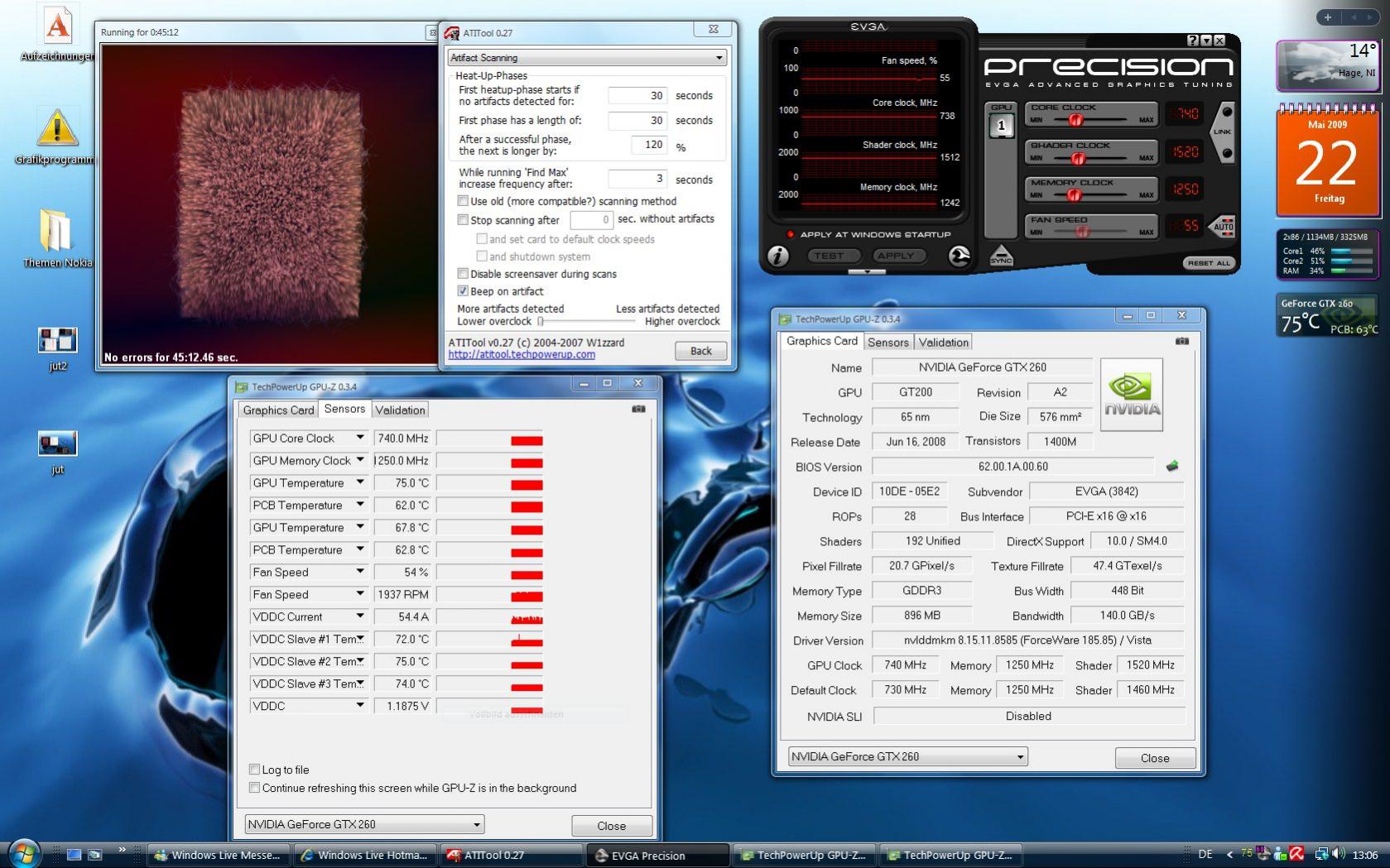 sehr unwahrscheinlich dass du 1300 stabil kriegst, denn dann müsstest du die schneller speicher verbaut haben, ich kann auch Crysis mit 1323mhz real zocken, ohne probleme, aber die sind nicht stabil