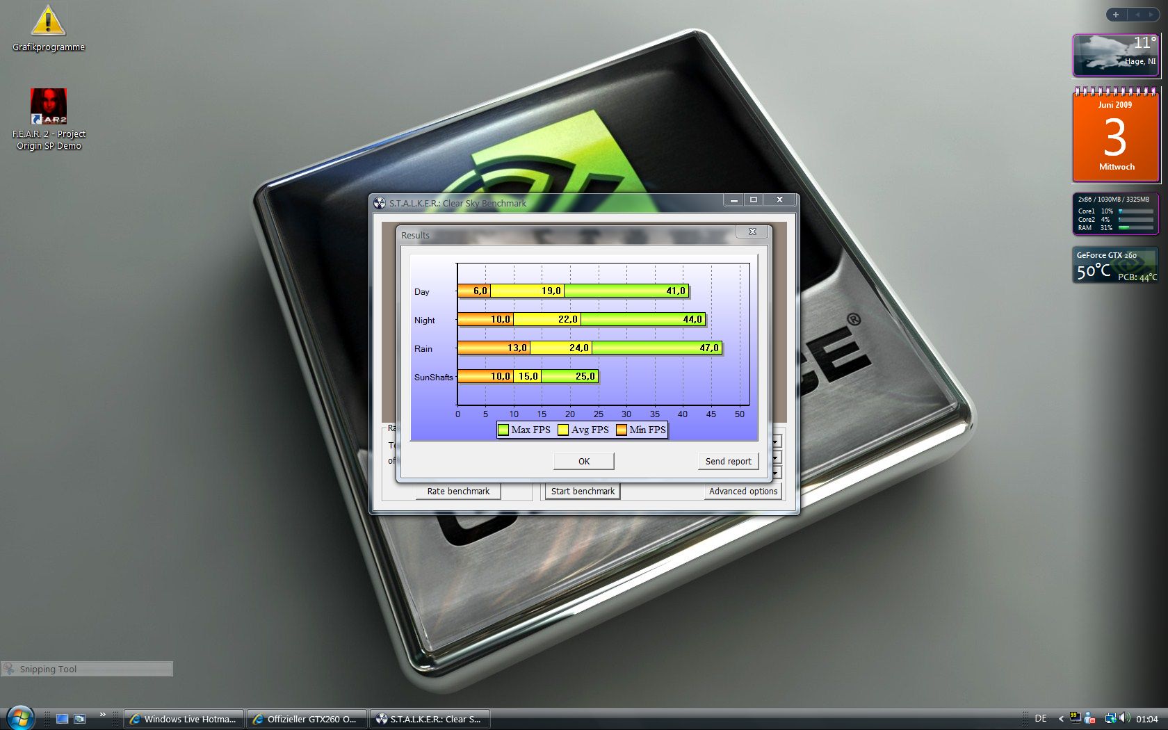 nicht böse gemeint aber bei dem Stalkerbench bei dir kann was nitt stimmen. zu hohe frames. haste die richtigen einstellungen vorgenommen ? zb auch Anti usw????