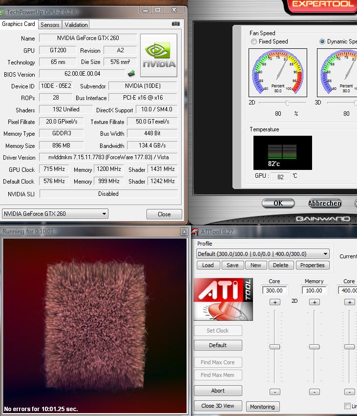 Da mein Straight Power 500W heute endlich angekommen ist, habe ich mich natürlich gleich an's Übertakten rangemacht (und das sogar ohne Garantieverlust, EVGA sei Dank