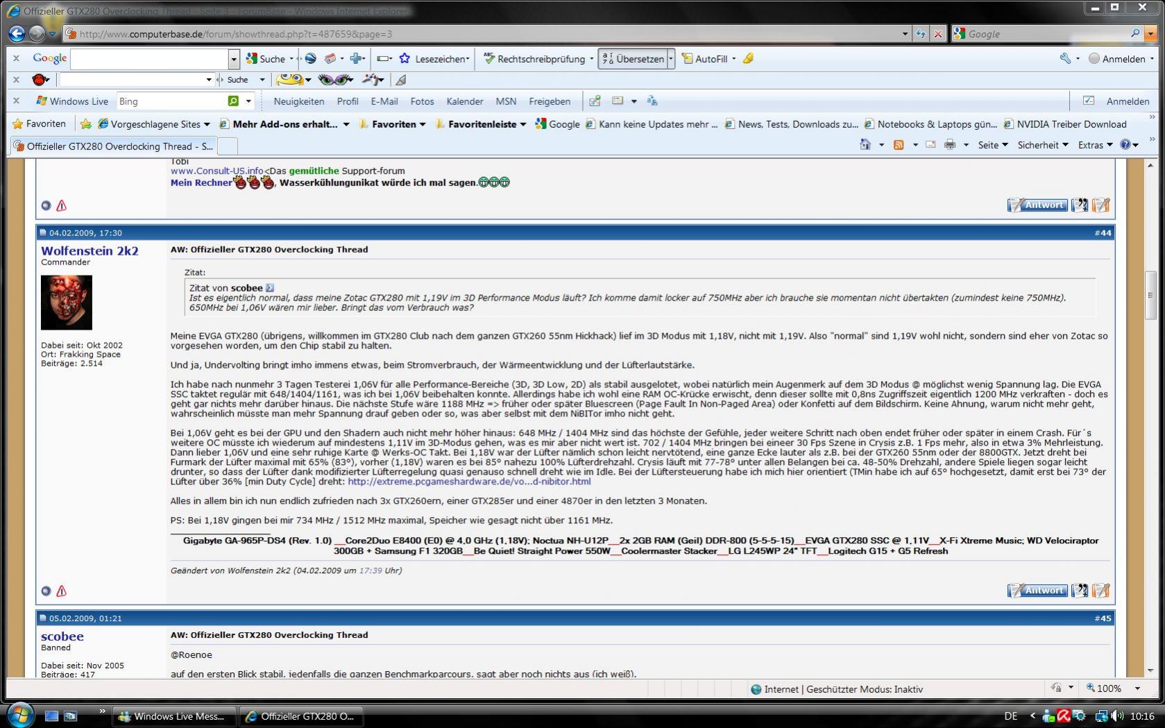 deswegen sind max derzeit 729/1566/1224@1.1375v stabil möglich, leider kackt er bei etwas zu höherem speicher teilweise ab in BIAA z.b. nach ca. 20min aber Crysis gehen 1242 speicher^^, lieber stabile 1224