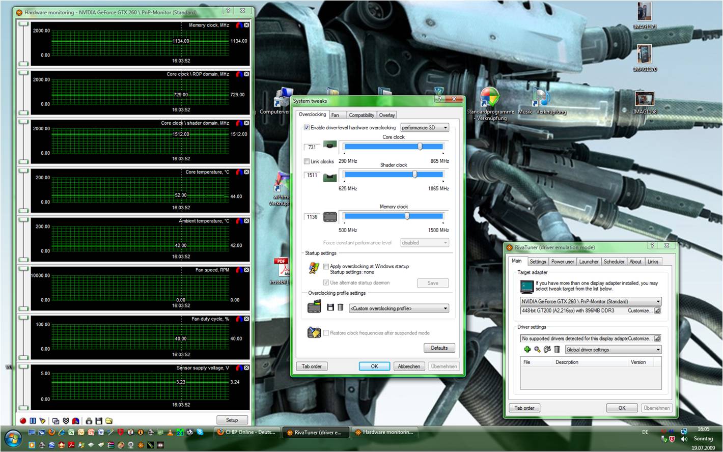 aber speicher ist auch nicht so wichtig, ich mein 12xx reichen völlig! das sind 200mhz mehr leute wie default sowas is einfach geil^^ ich hab meine alten karten ja auch gerne übertaktet aber da ging beim speicher immer nur 50mhz max 100 aber das war dann schon aussnahme aber hier mit der GTX knall ich satte 270mhz hoch