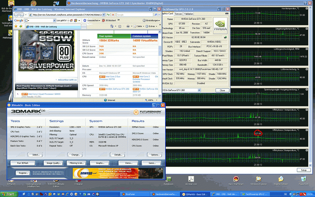 Vielmehr bleibt das Optimum (gerade für LuKü User), wenn die eigene Karte mit niedriger Extra-Spannung wie 1.06 V oder gar 1.03 V ein nettes OC-Ergebnis erreicht (700/1400 oder 729/1458) ... das schont auch den Geldbeutel durch niedrigeren Stromverbrauch