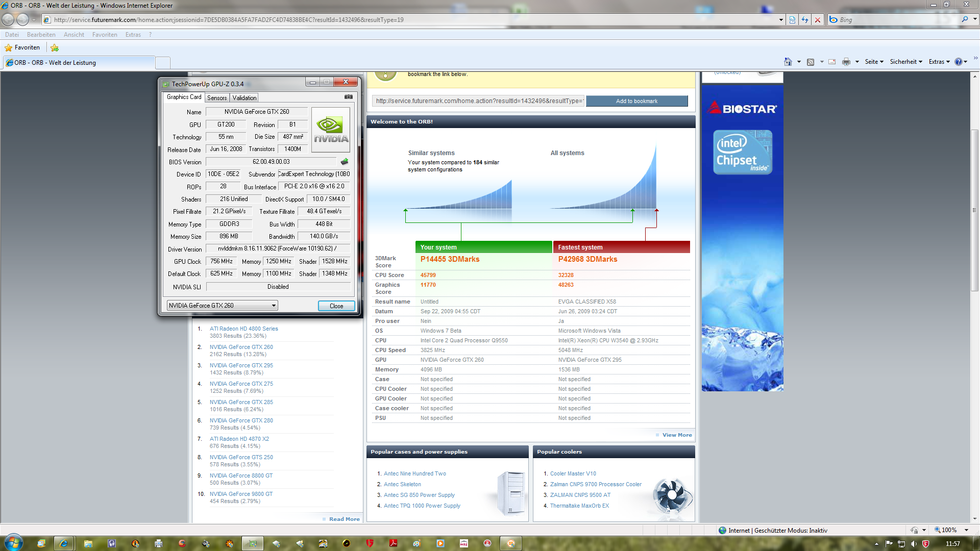 Ich werde langsam nervös. Meine Grafikkarte (GTX 260) wurde 83-84C° warm und das bei 1500U/min. Warum? Manchmal schaltet die auf 70% und erreicht das garnicht.