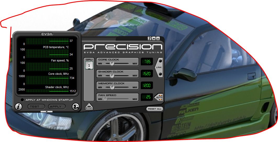 So nach einigem Gebastel und Getüftel habe ich die Taktraten auf 756/1512/1200 setzen können und sie scheinen zumindest anfänglich stabil. Ausführliche Tests kommen noch, aber ich habe es zumindest erstmals geschafft, den bei mir extrem empfindlichen 3DMark Vantage mit diesen Taktraten durchlaufen zu lassen, ohne einen Leistungsverlust und/oder Absturz hinnehmen zu müssen.