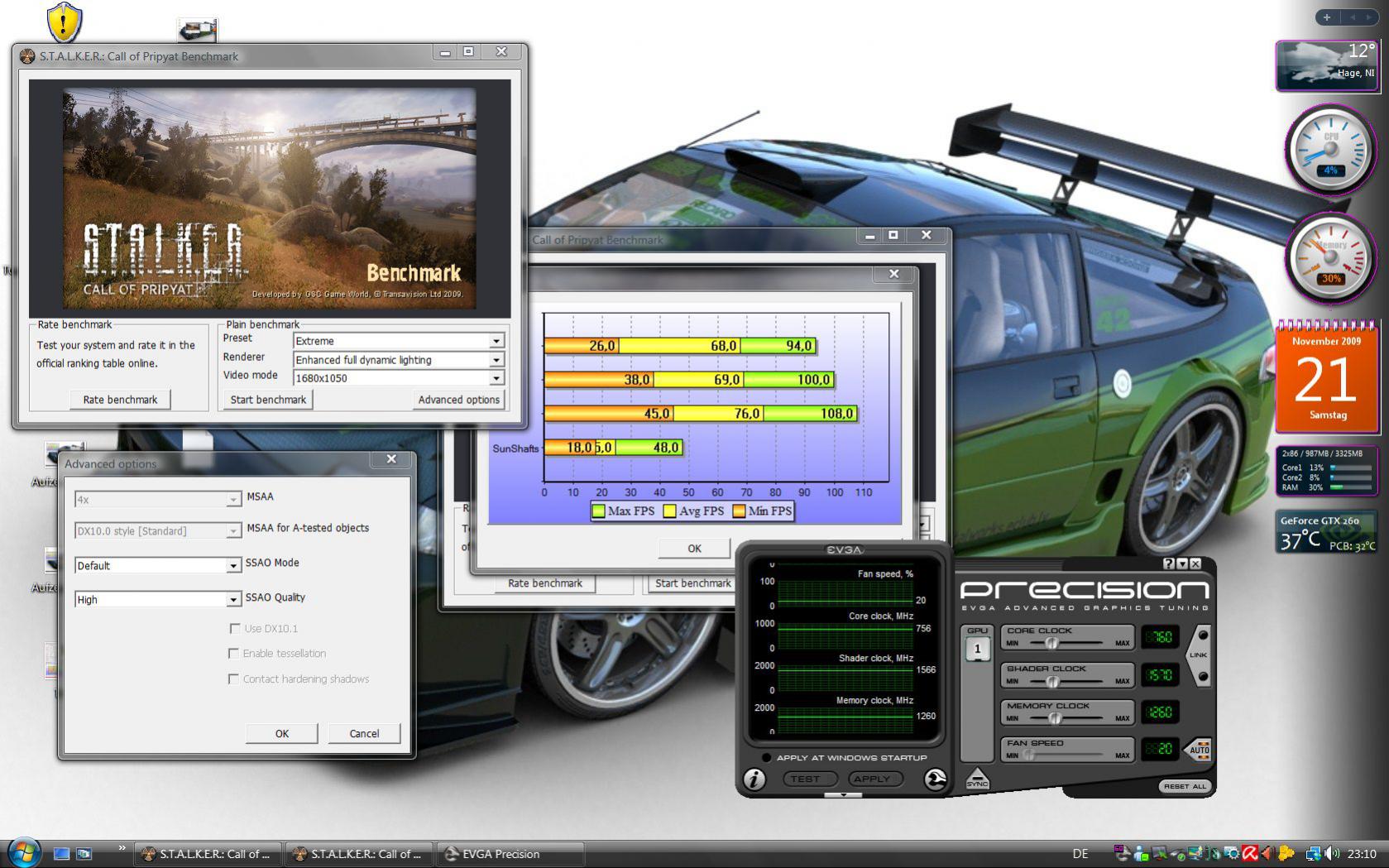 Btw. Könntest du Stalker auch mal mit den höchstmöglichen DX9-Settings testen. Ich nutze hier XP64 und verfüge daher über kein DX10. Zum besseren Vergleich finde ich persönlich es auch etwas besser, wenn man sich eventuell auf die kleinsten gemeinsamen Einstellungen einigen könnte