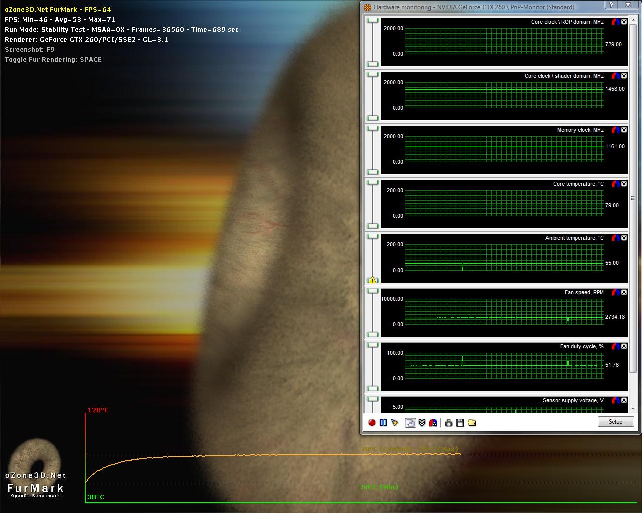 Achte dabei auch immer auf deine Temps, ändere ggf. die Lüftersteuerung im Rivatuner. Und kontrolliere bevor du weitermachst mal die anliegenden Spannungen - sofern du eine 65nm Karte ist dies problemlos möglich. Bei den 55nm gibt es nur wenige Versionen mit einer Spannungskontrolle, dies sind dann proprietäre Eigenkreationen der Boardpartner.