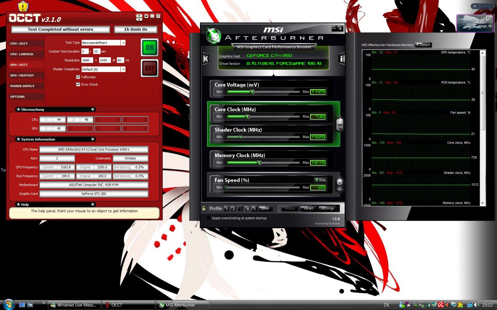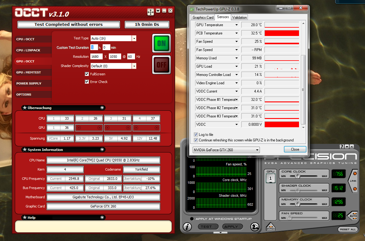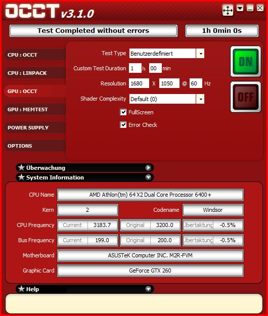 Meine GTX260 (hab das Ding ja noch) würde die Furmark-Werte nie stabil durch OCCT bringen.Da wäre das OC-Ergebnis bei vielen eher ernüchternd.