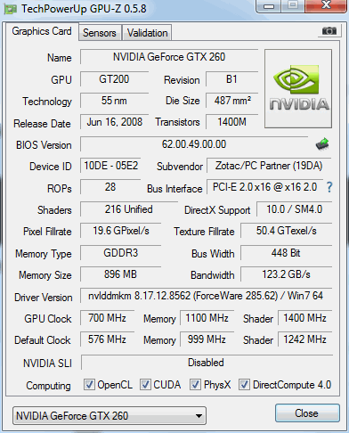 ich hab meinen Windows 7 x64 neu aufgesetzt und nun mal wieder mit meinen Grafikkarten rum gespielt (2x XFX GTX260 Black Edition), aber ich habe mit beiden das gleiche Problem (einzelnt, kein SLI).