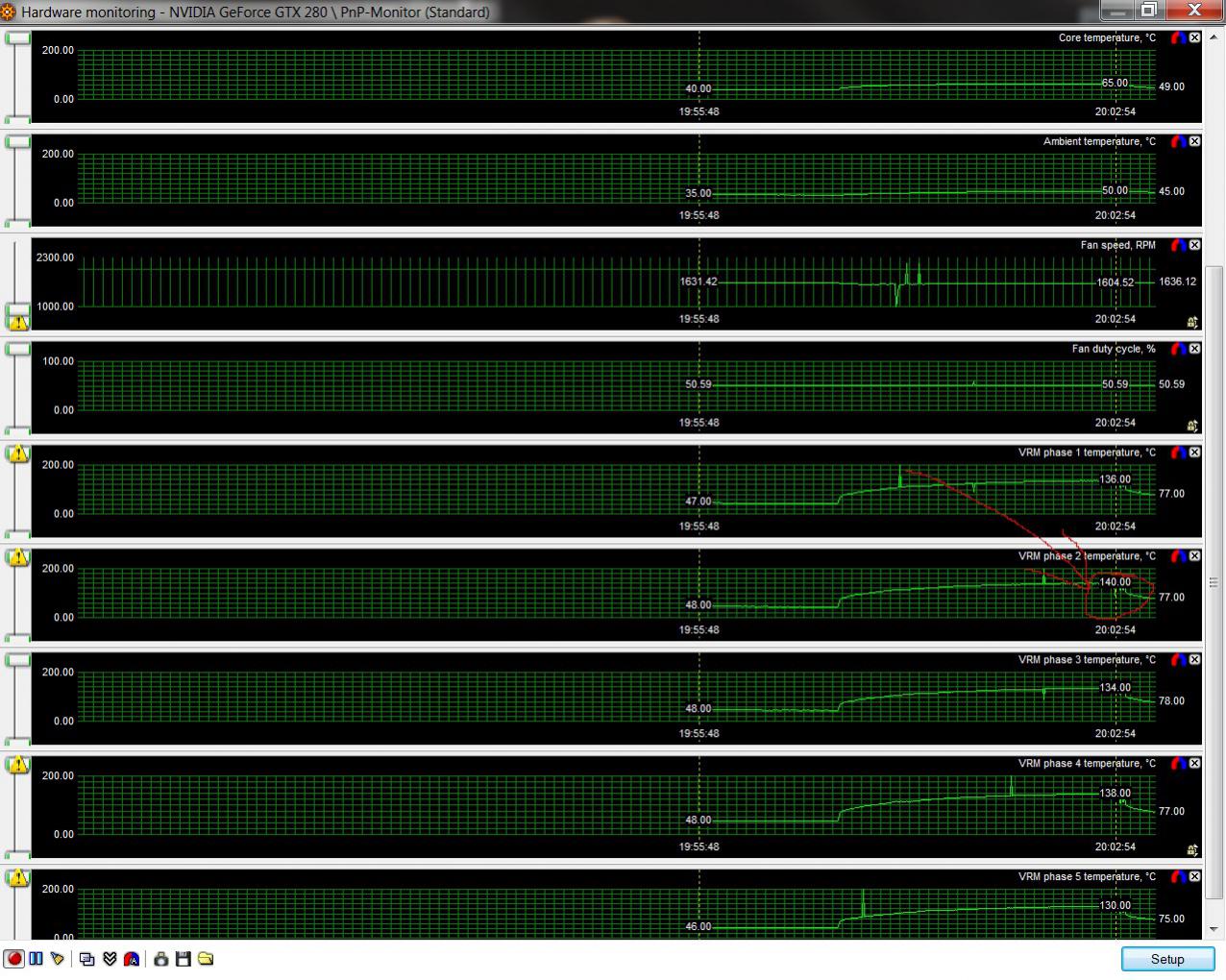 Jetzt ist mir aufgefallen das es bestimmte Testprogramme für die Graka gibt aber probleme habe ich ja nicht kann ruhig 600sek. Furmark laufen lassen ohne irgendein Fehler will aber sicher gehen das sie nicht bald denn Geist aufgibt Speicher und GPU sind besten die werden bei Furmark an die 60°C heis und Speicher nur 40-50°C.