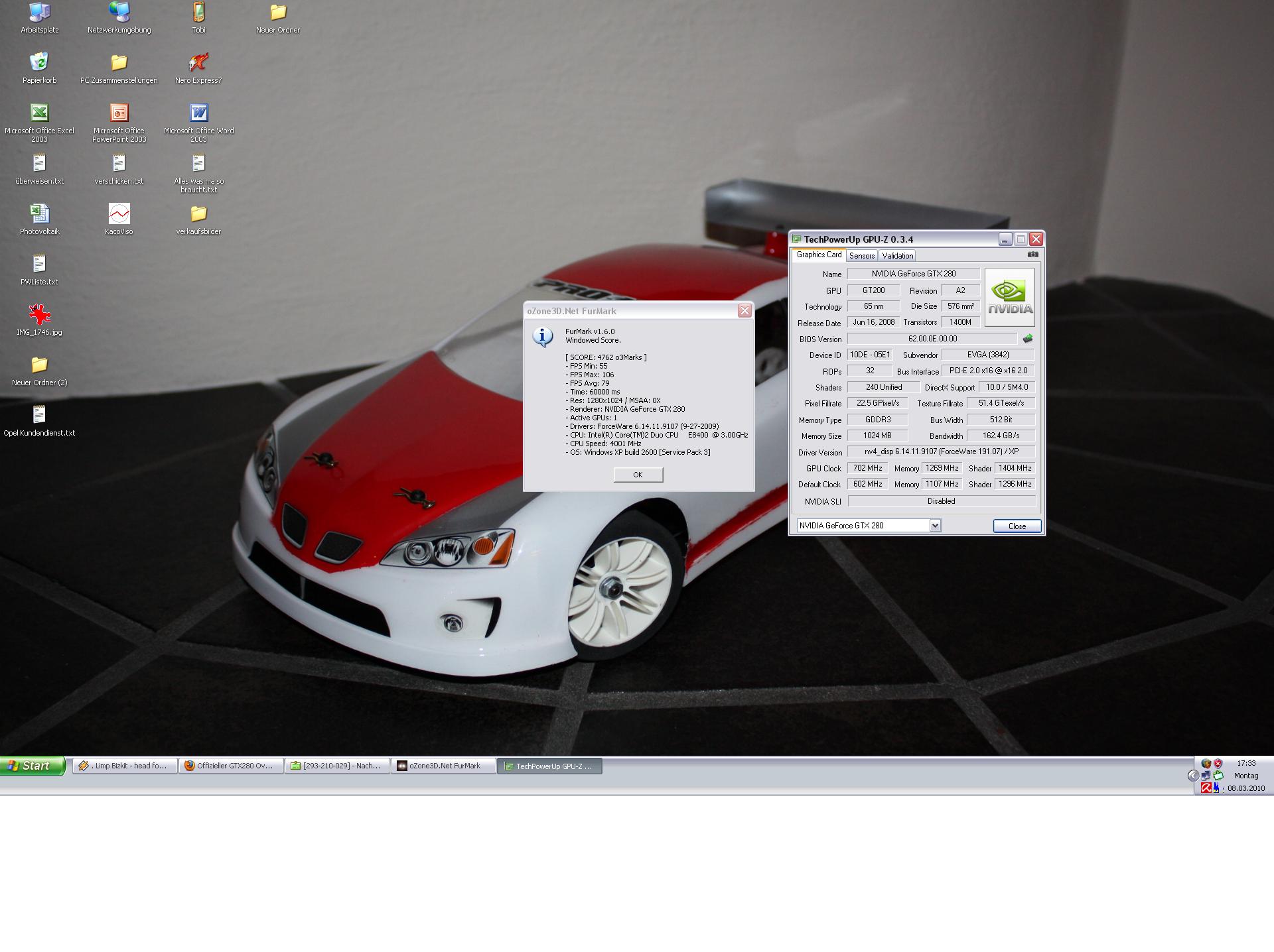moin, ich wollte mal fragen ob hier jemand seine furmark score mit seiner übertakteten oder unübertakteten gtx 280 präsentieren könnte.