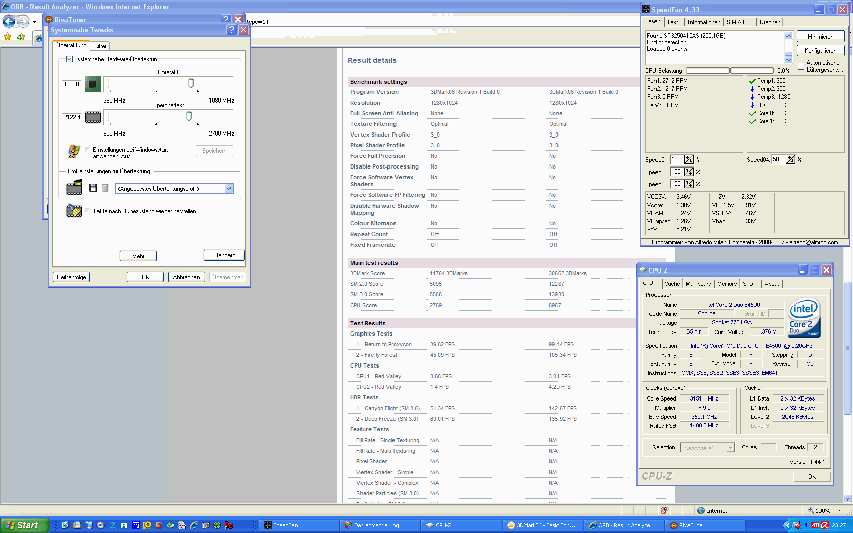 habe jetzt momentan auf stabilen 735/974 takt 10300 punkte bei 3DMark06 mit