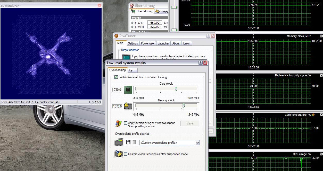 temperaturen mit Rivatuner und FUR benchmark getestet bei 1Std vollauslast