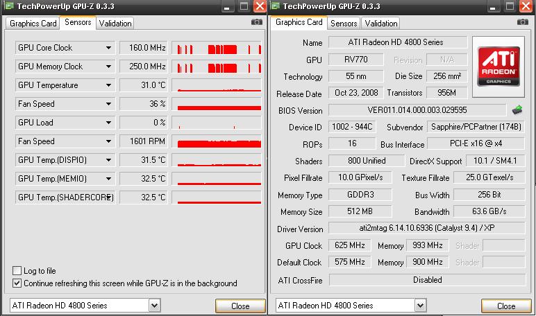 So wie mich das ansieht hat es den V-ram durchgehauen. Da die Karte nun RMA muss habe ich ein kleineres größeres Problem. Als ich die Karte vor gut 8 Monaten auf den Accelero umbaute hat mir ein 5-Jähriges Büblein den Kühlblock hinunter geschmissen, erstmal dachte ich mir: "Egal, denn den Kühler den sie jetzt bekommt ist eh um längen besser!" Das stimmt auch ich hatte Last temps von 65,5°C unter Furmark (mit dem alten Catalyst) Denn insgesamt bliesen