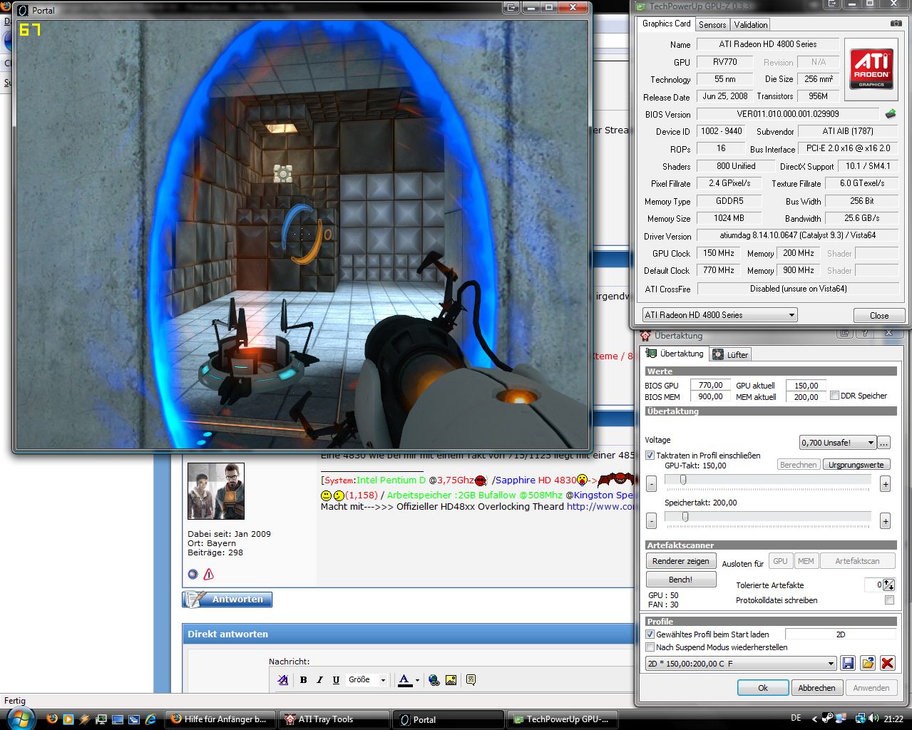 Ich wollte meine 4850 endlich mal übertakten! Bei Lastwerten von 48°C habe ich ja Spielraum satt. Also drei Bleistifte und Multimeter ausgepackt und angefangen.