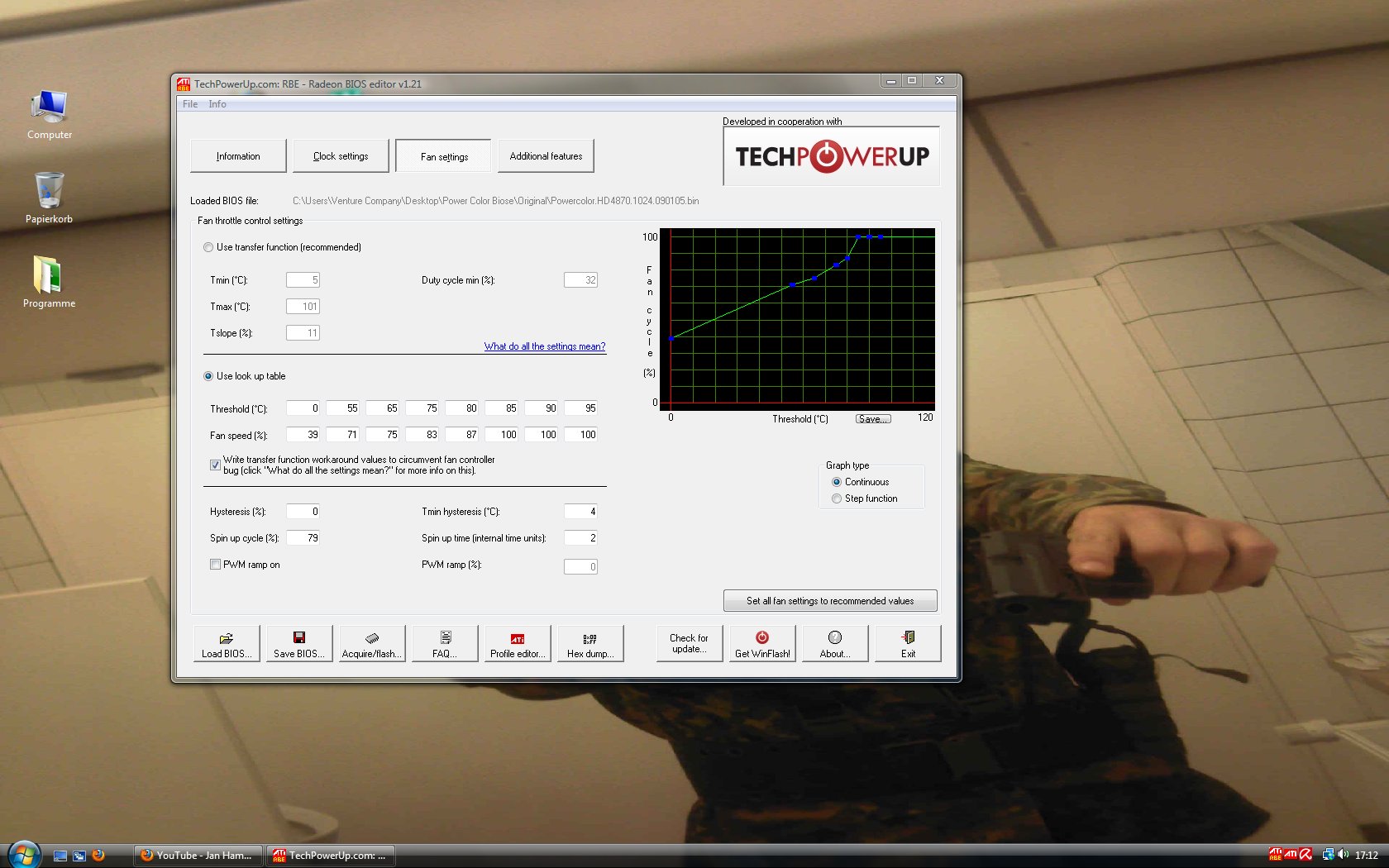 nim halt dein orginales kanst ja auf dein gehör einstelen nim das ati tray toll da kanst die lüfter einstelen dan last den atefaktscan laufen und schaus auf die tem ist die zu hoch dan lüfter rauf so kanst die einstelen und flashen