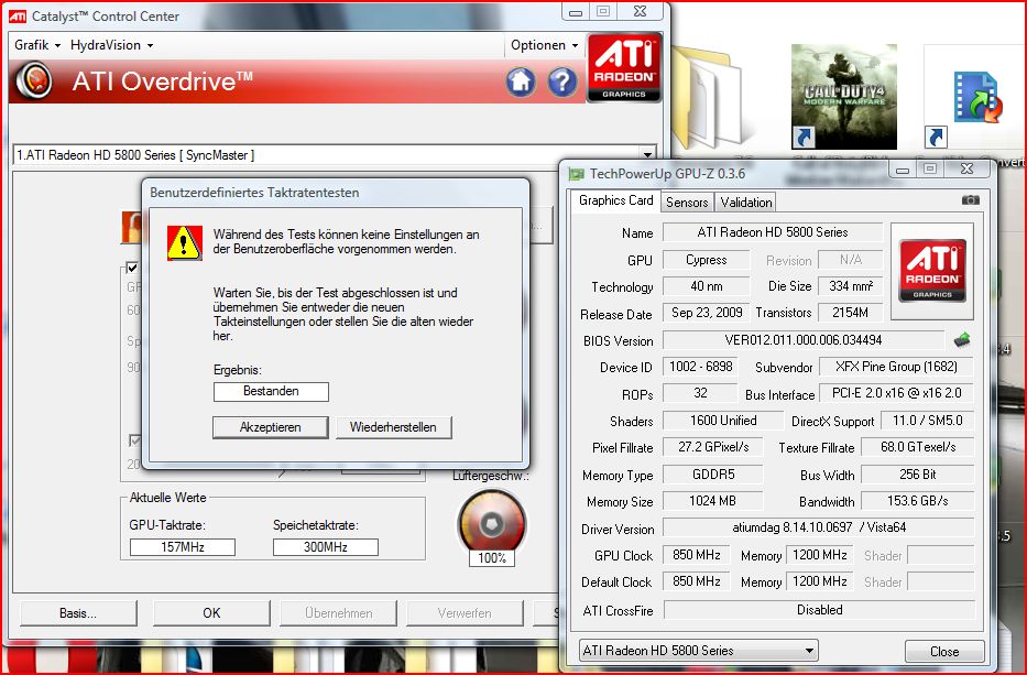 die 5870 lässt sich jetzt zwar auf 900mhz über overdrive übertakten man hat aber 8 fullscreen bild fehler bei test 2 ,3dmv.