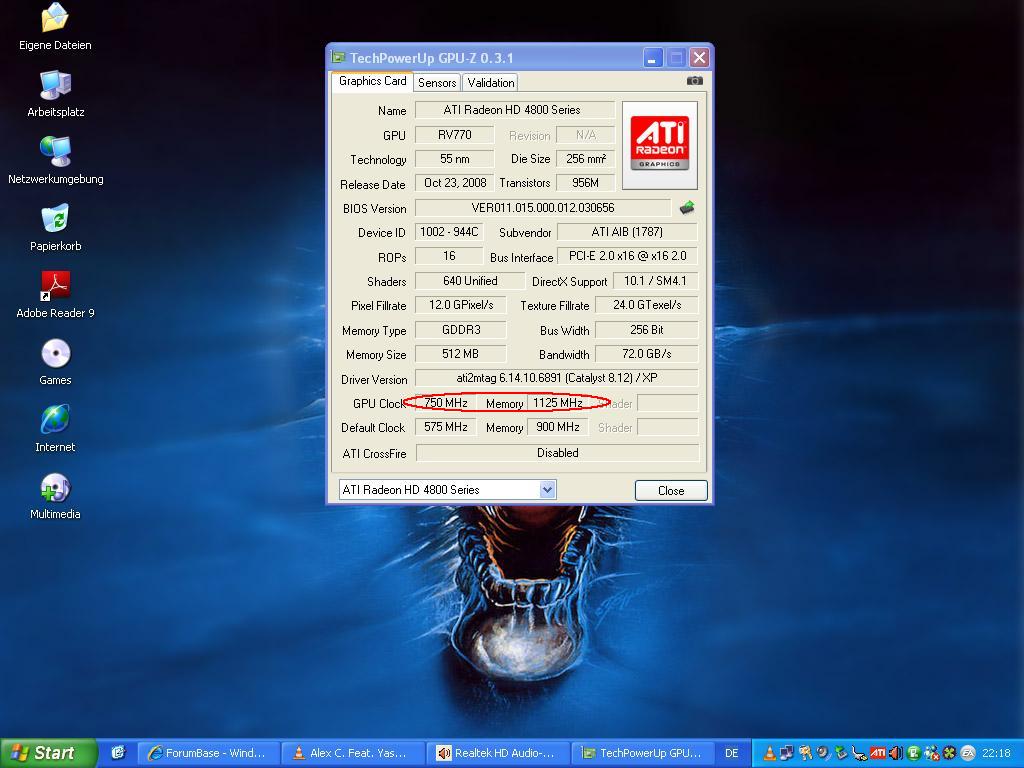 An den RivaTuner traue ich mich nicht mehr ran, da er mit dem 8.12er Catalyst immer Bluescreens produzierte wenn ich den Takt anheben wollte und das ATi-Tool ist uralt und erkennt somit neuere Karten schon gar nicht mehr!