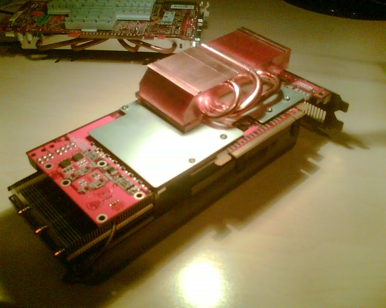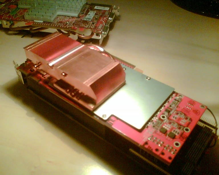 Meiner Meinung nach würde es sich sehr lohnen die "rote Platte" einer 4870, zumindest an den VRAMs, einzufräsen, sodass ein Gebilde ähnlich des X1300 Kühlers entsteht.