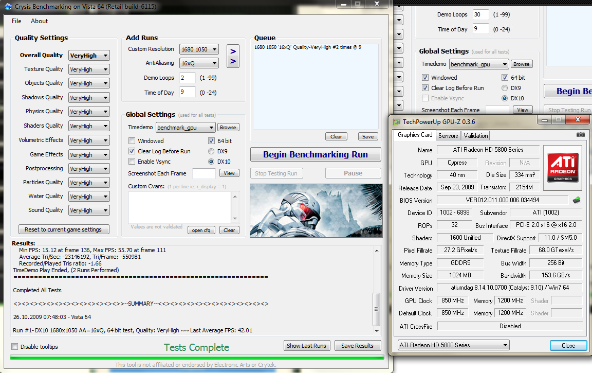 Bei dem Crysis Benchmark ist bei mir was komisches....egal wie...der stürzt nach loop 3 ab...mit OC ohne OC ...GAR KEIN OC...nunja...keine Idee wieso und warum..