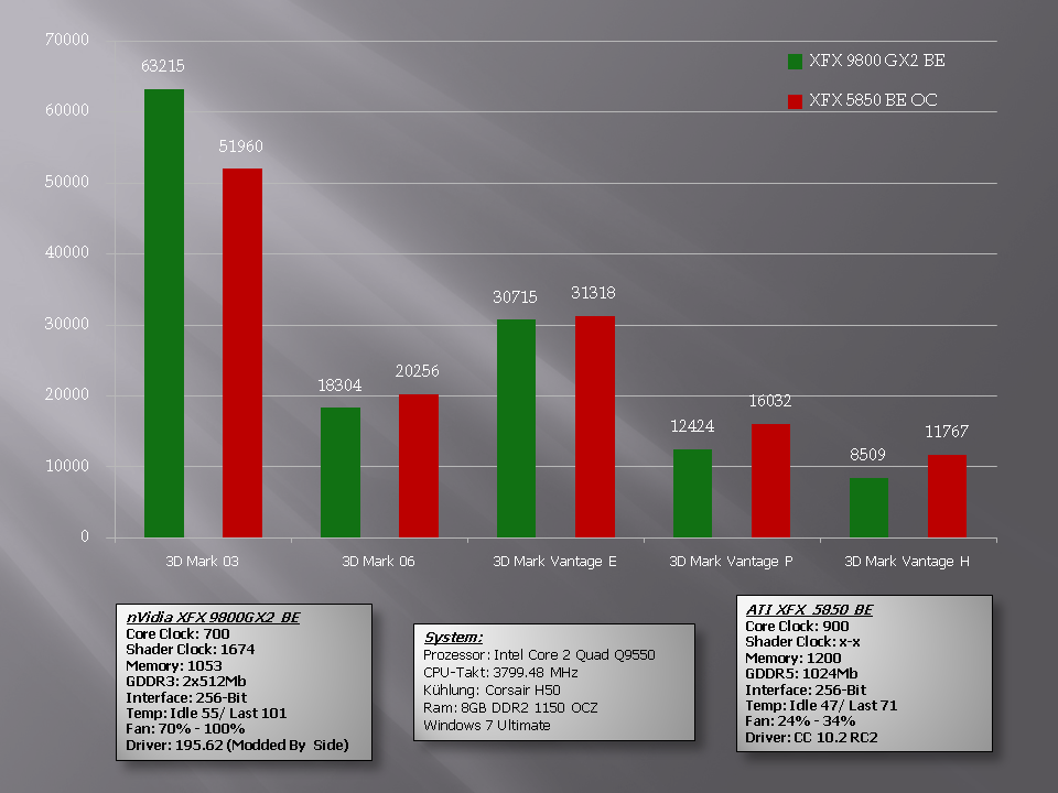 Screens sind im Anhang. Der 2te handelt von 3d Mark. Habe einfach mal meine alte XFX 9800GX2 BE verglichen. Das Gleiche mach ich mit ein paar games. zeig ich euch morgen mal.