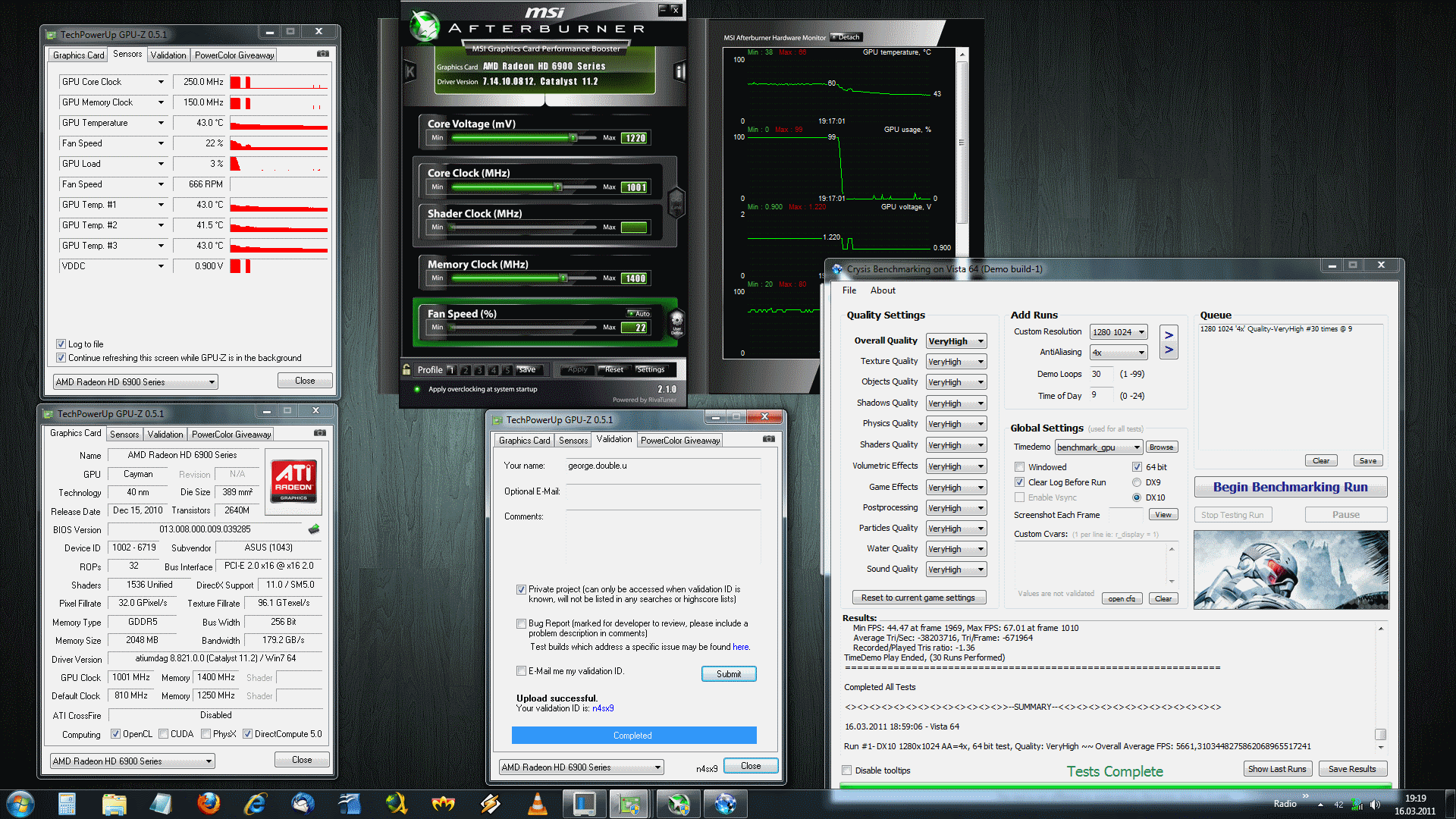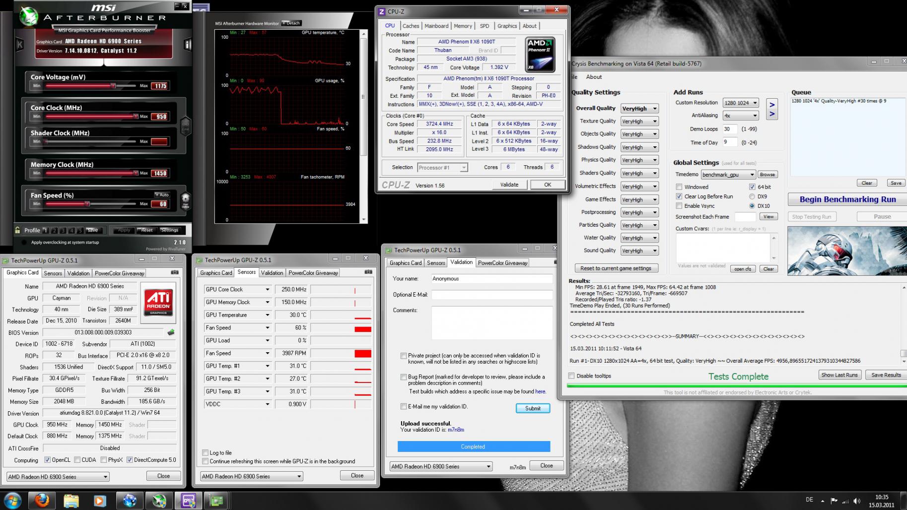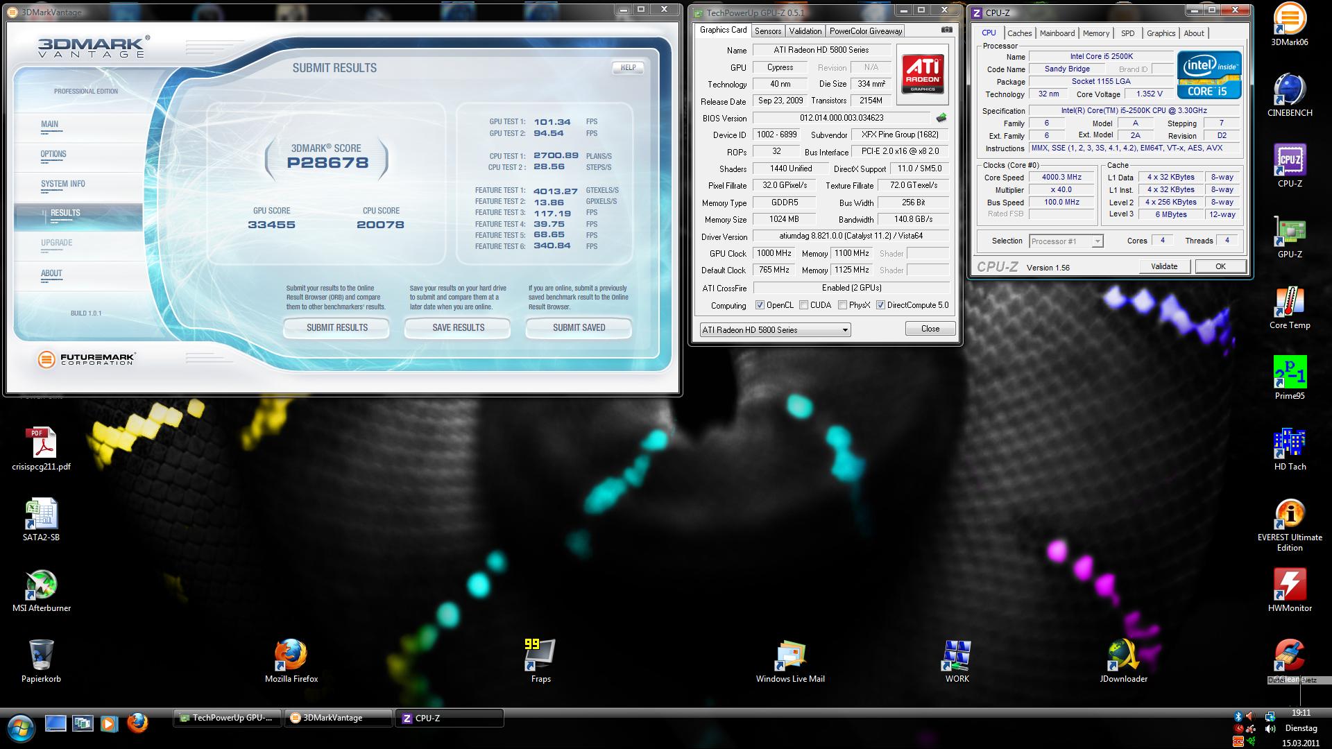 Ich weiß echt nicht, ich habe am Sonntag alles ausgebaut, Mainboard, Kabel und den ganzen Rest, weil ich meine Wärmeleitpaste neu auftragen wollte, weil meine CPU zu warm wurde, weil ich davor die Wärmeleitpaste falsch aufgetragen hatte. Danach lief auch komischerweise mein System "instabiler". Ich konnte aufeinmal in Crysis Warhead mein Spiel nicht laden, es ladete bis 100%, dann stürzte das Spiel ab, dann wollte mein Bruder einwenig CS 1.6 zocken so aus langweile und sogar da gabs so "Milisekunden" Laggs, beim Waffen switchen. Dann hab ich Treiber neu installiert, Crysis neu installiert, Graka BIOS-Schalter geswitcht und es lief irgendwie stabiler, aber an dem Crysis Benchmark habe ich gemerkt, dass doch nicht alles stabil laufen kann, bei so wenig FPS, ich habe echt kein Plan mehr.