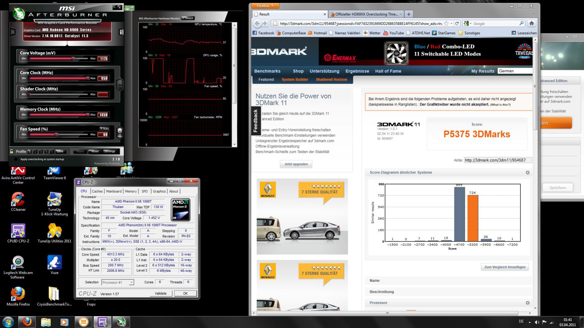 Ich habe kürzlich meine His 6950 zur 6970 freigeschaltet, nun habe Ich hier noch ein neuer Wasserkühler den ich drauf schrauben werde, also ist sicher noch Potential da.
