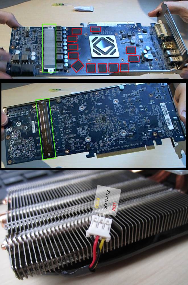 Im Bild ist der Originalkühler zu sehen - und die verdreht gesteckten Kabel des Accelero Xtreme 7970 hab ich dazugeschrieben !!!! Das bitte vorher abändern !