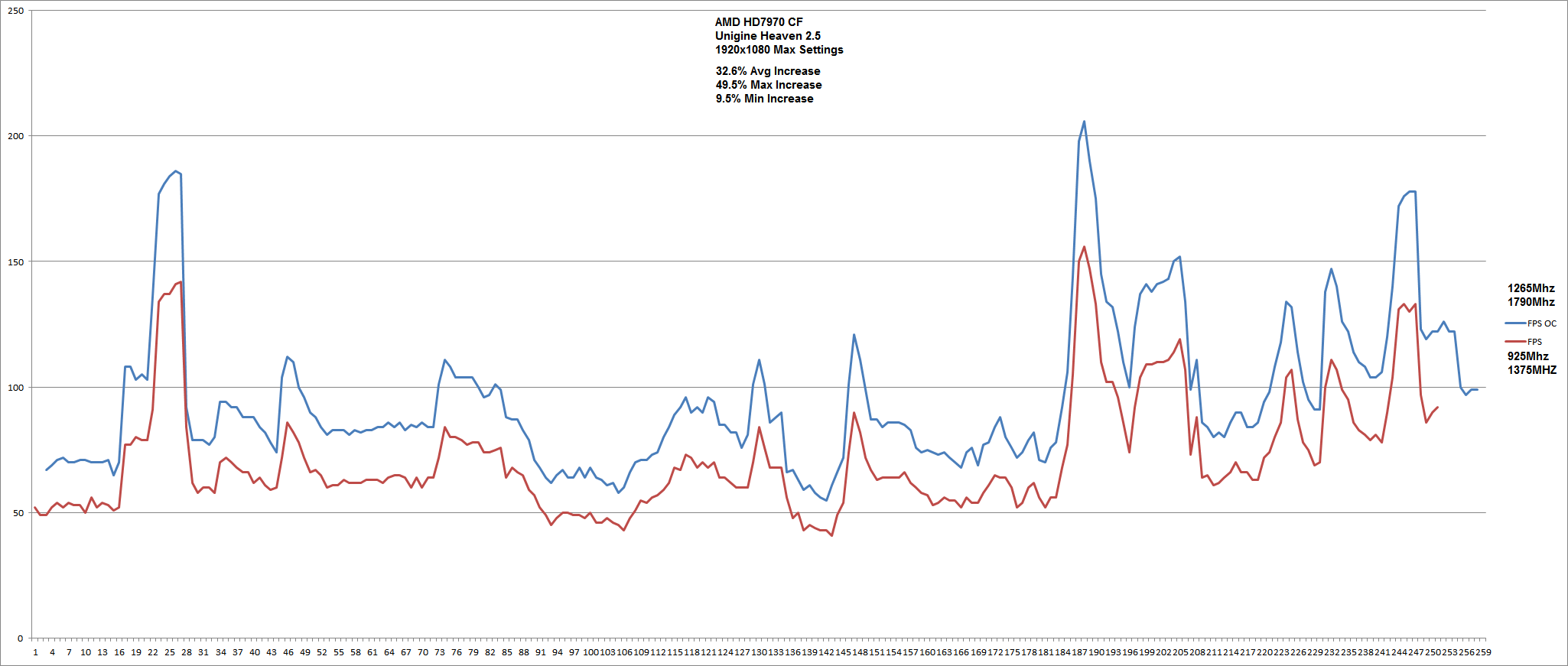 ob du nun 52 oder 60 FPS hast kann bei vsync viel ausmachen! Auch ob du nun 35 oder 39 FPS hast ist ein kleiner unterschied. übrigens... 15% ? du hast beinahe 1:1 Takt in mehrleistung! also sprechen wir hier von 30% ich komme jedenfalls bis 35% mehrleistung! (im Durchschnitt, nicht Peak!)