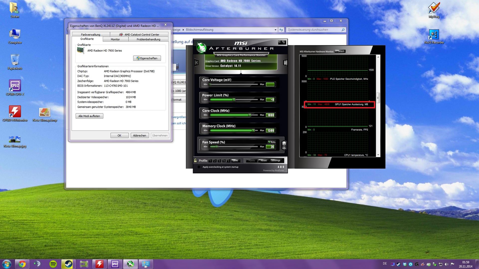7970 Taktraten: 925/1375 bei 1,175 Volt GPU Spannung und 1,6 Volt VRAM SPannun