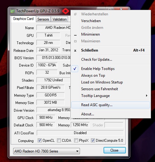 ShaleX schrieb:Welchen ASIC hat sie denn? (GPU-Z auslesen, in der leiste oben rechtsklick dann ASIC auslesen] weil wenn nichtmal der Werk OC richtig funzt wuerd ich sie umtauschen